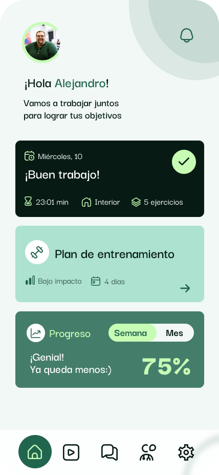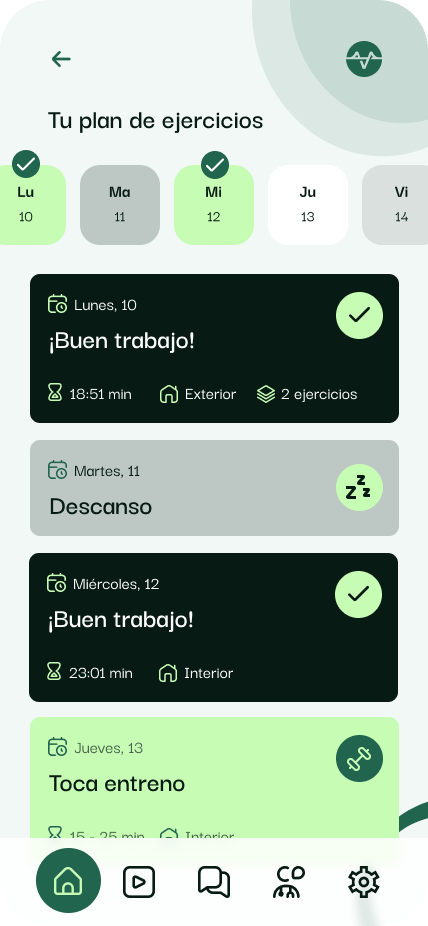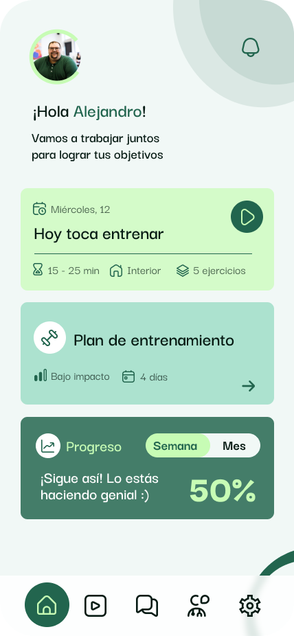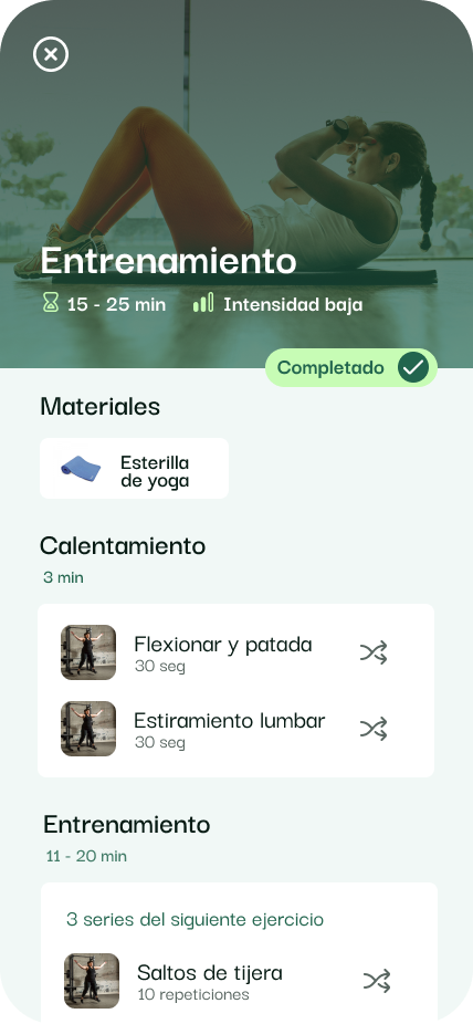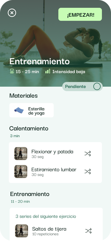 El usuario se pone en marcha con su plan de ejercicios personalizado.
