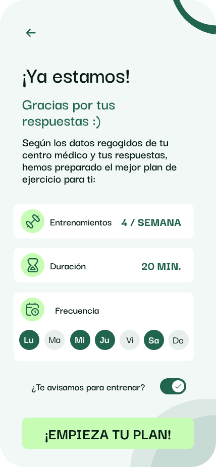 Con los datos recogidos más los datos aportados por el centro médico, la IA crea su plan.